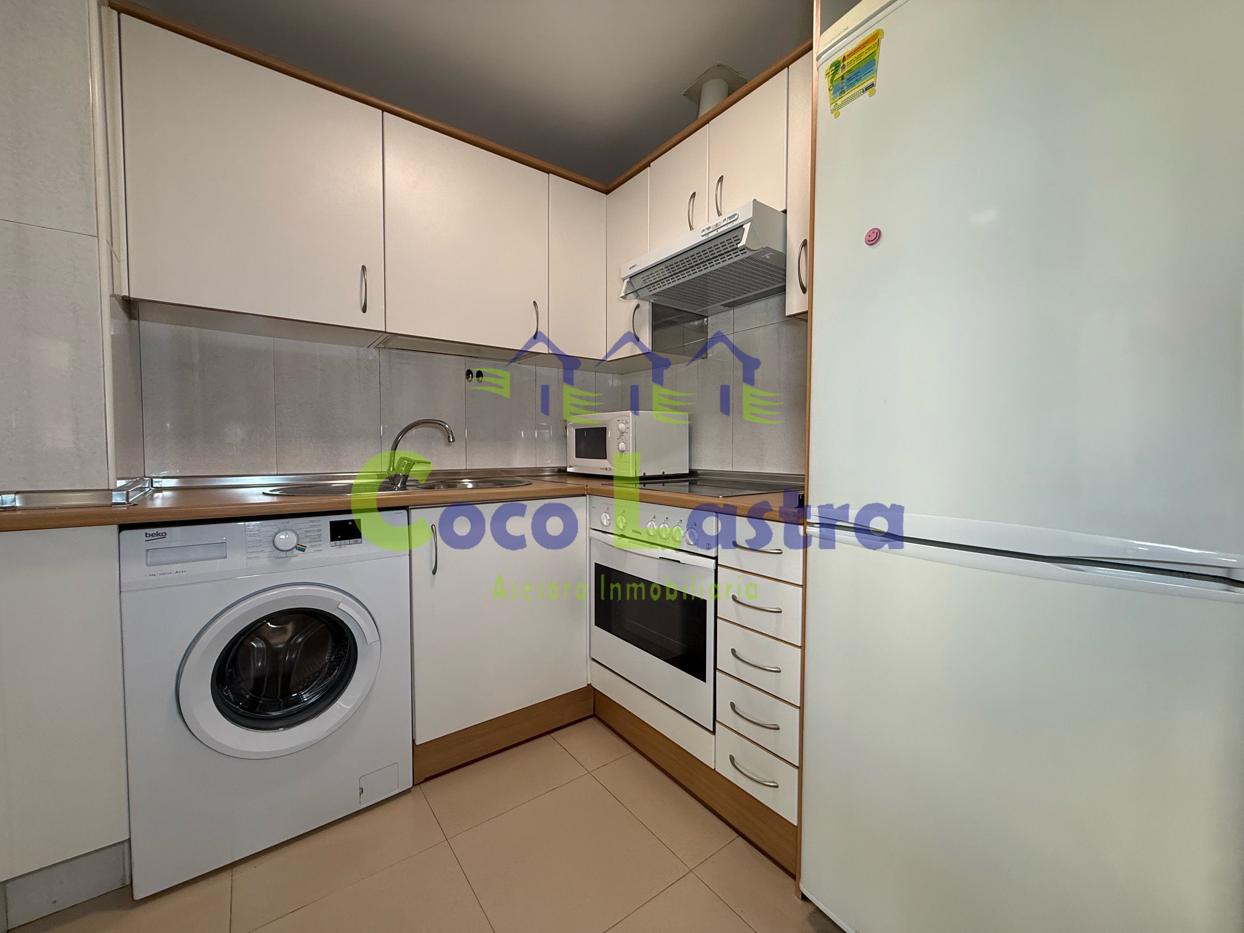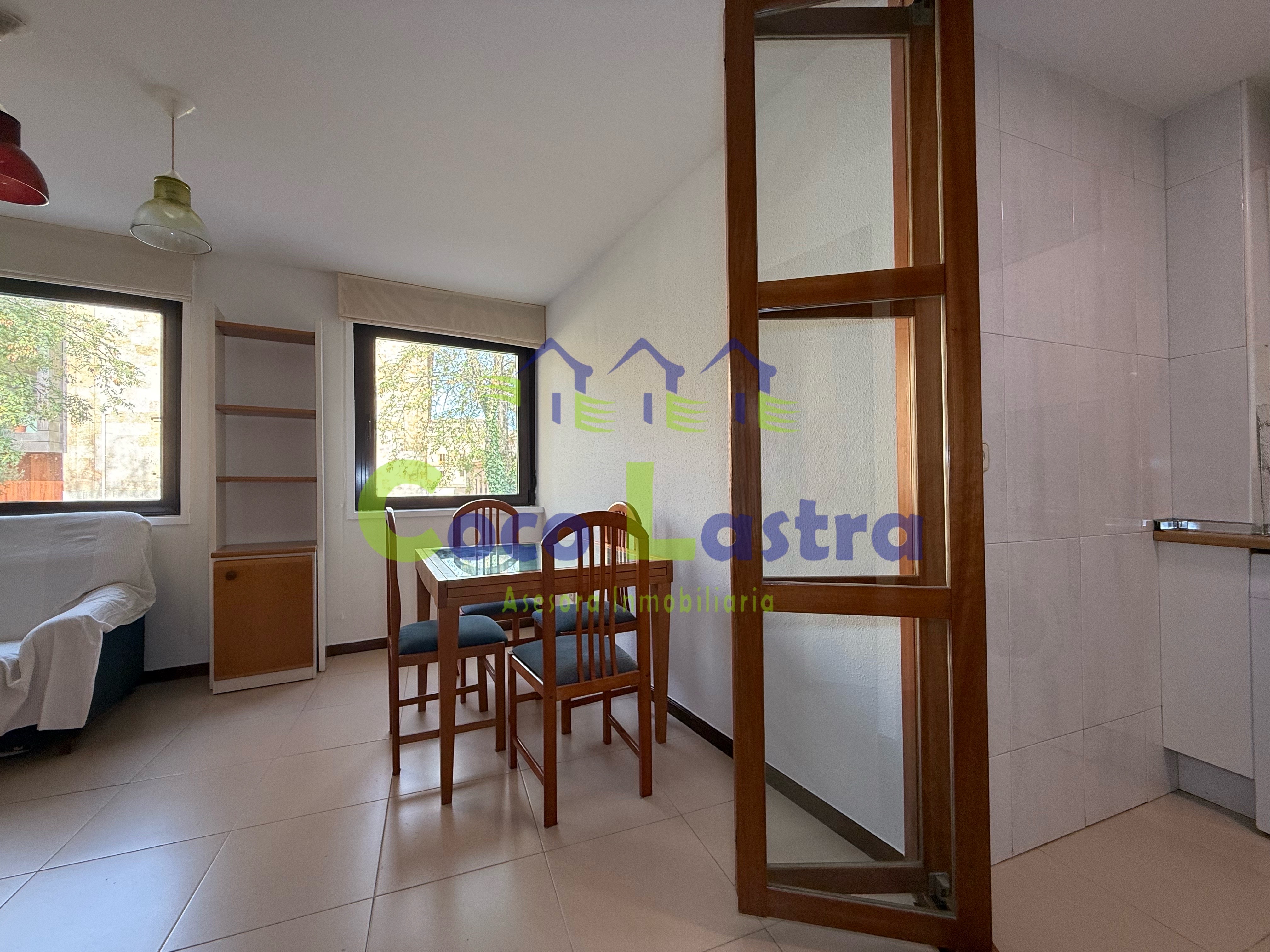 La vivienda en un primer piso, cuenta con un salón-comedor con vistas a la Catedral y a zonas verdes, orientado al norte, que constituye el corazón del apartamento. La cocina, totalmente equipada, se encuentra separada del salón mediante una elegante puerta plegable de cristal.
