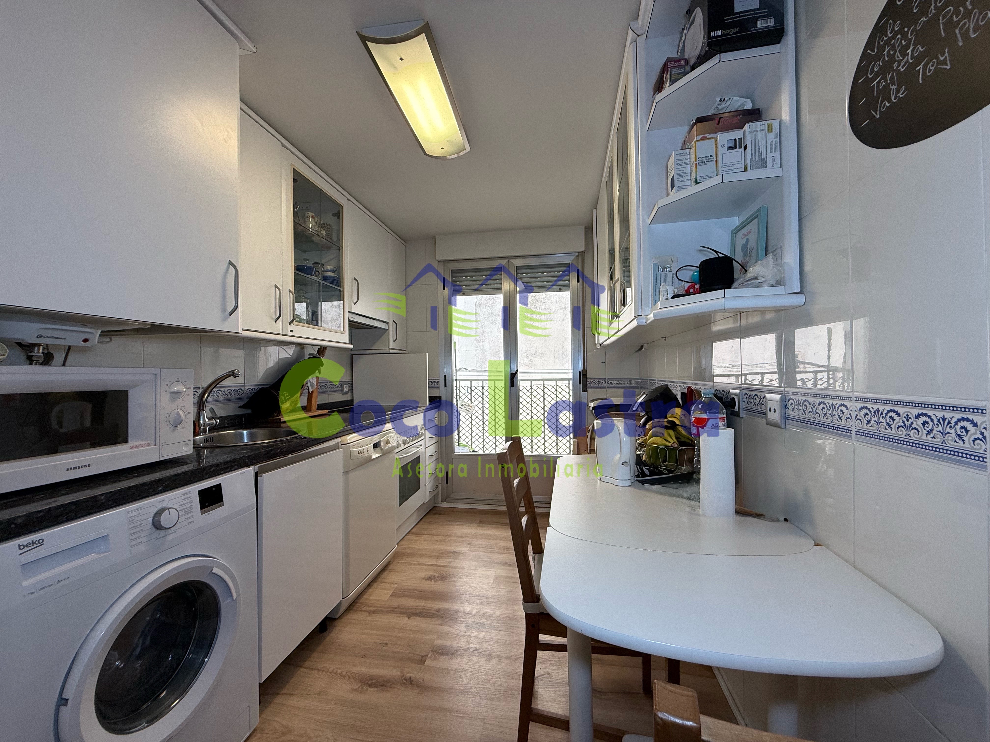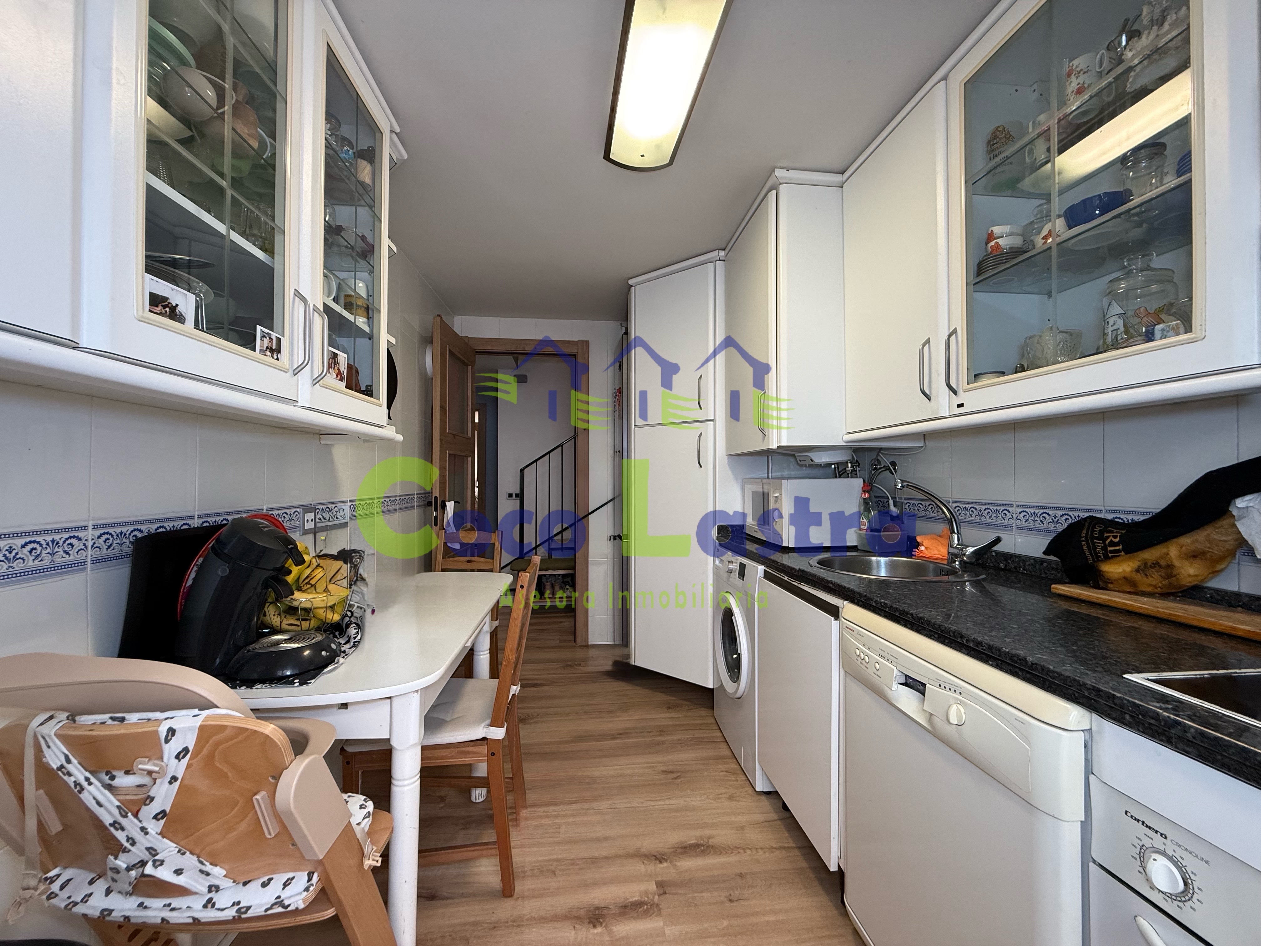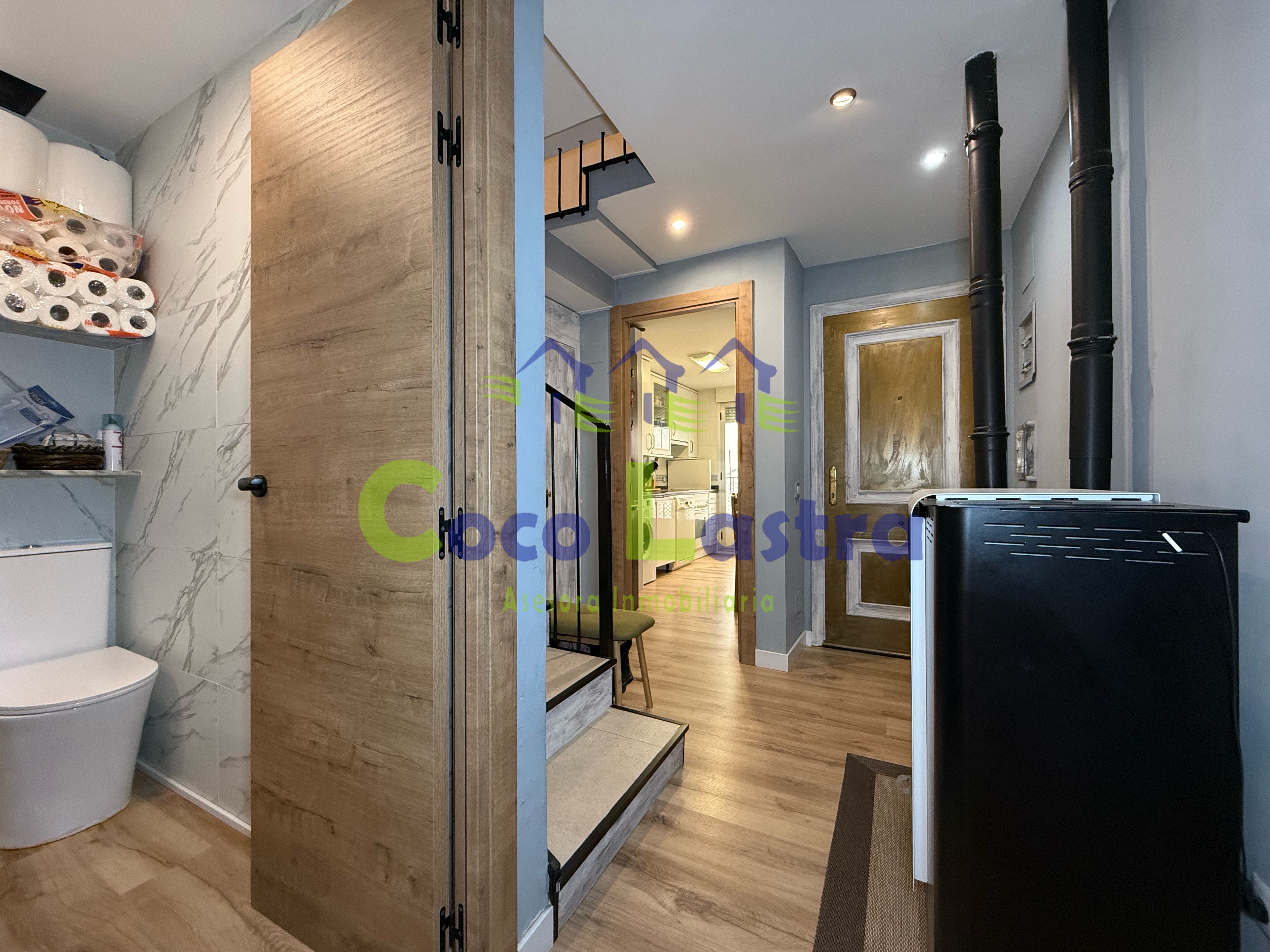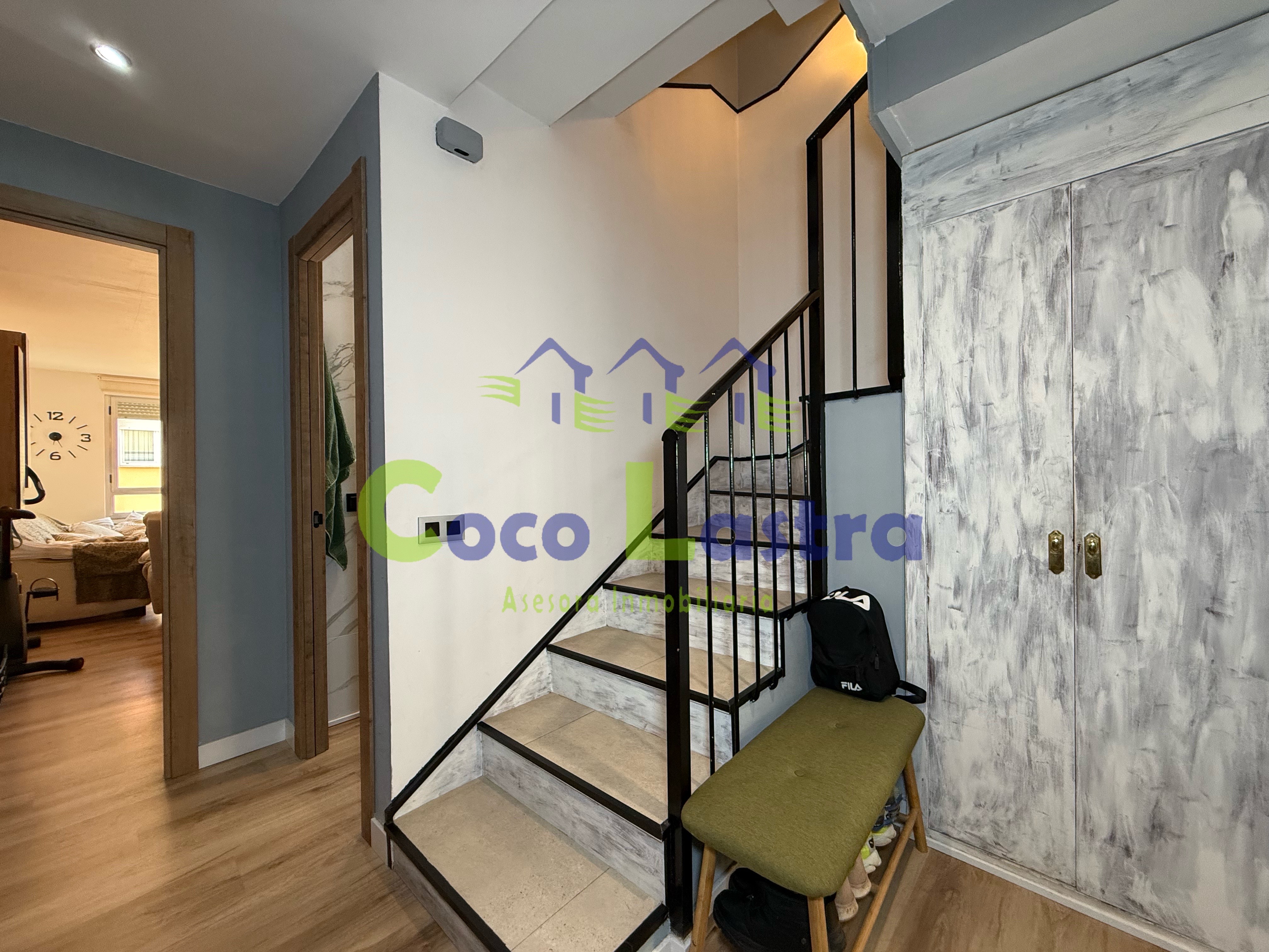La vivienda se encuentra en la tercera y última planta de un edificio construido en 1996 SIN ascensor y cuenta con una superficie útil de 71 metros, distribuidos en dos plantas, comunicadas entre si mediante una escalera interior. Accedemos a ella por la planta más baja a través de un hall con un armario ropero que aprovecha el hueco situado debajo de la escalera y te proporciona un espacio extra de almacenaje, un amplio y luminoso salón comedor, cocina independiente amueblada con balcón y un pequeño aseo.