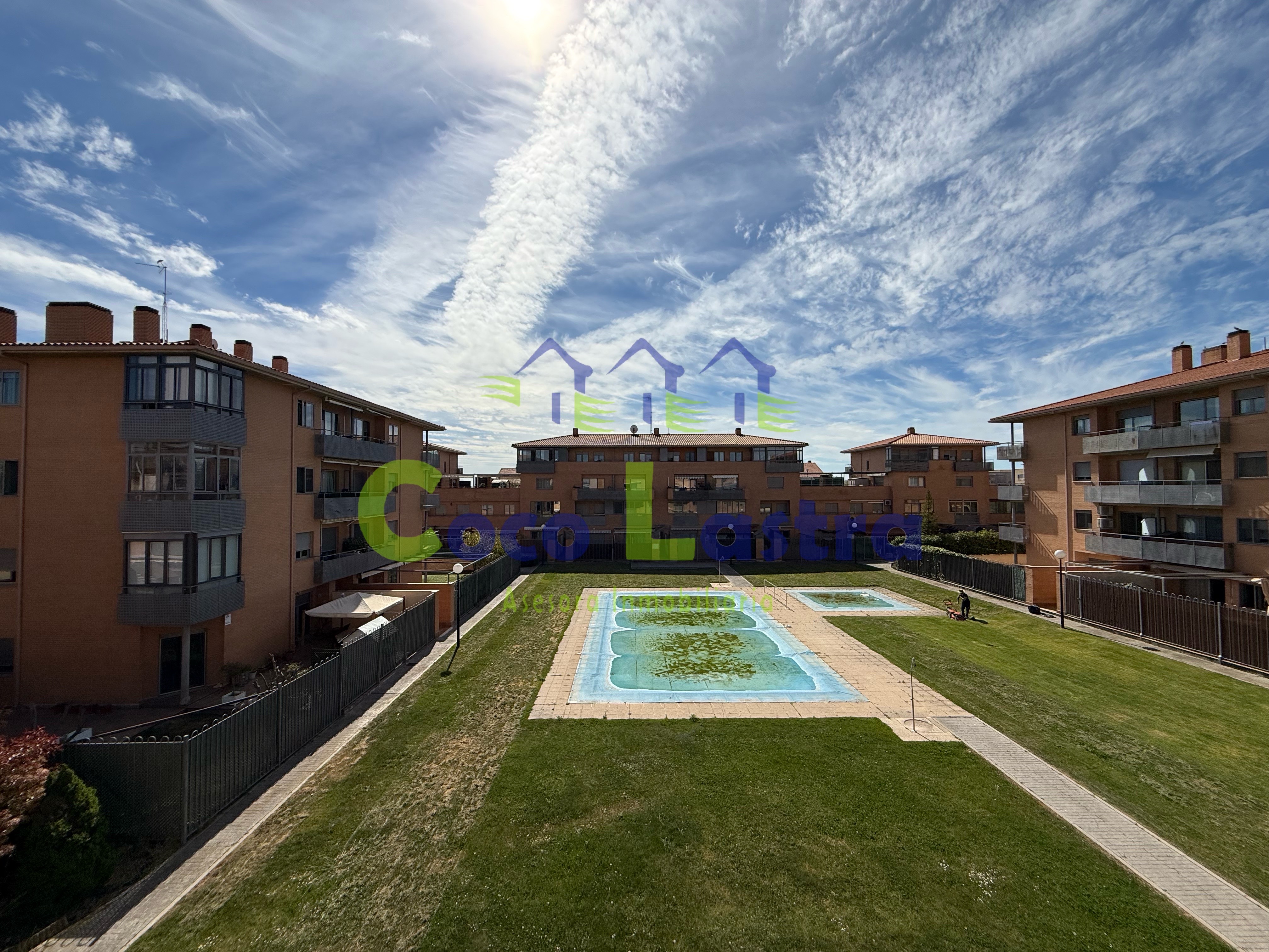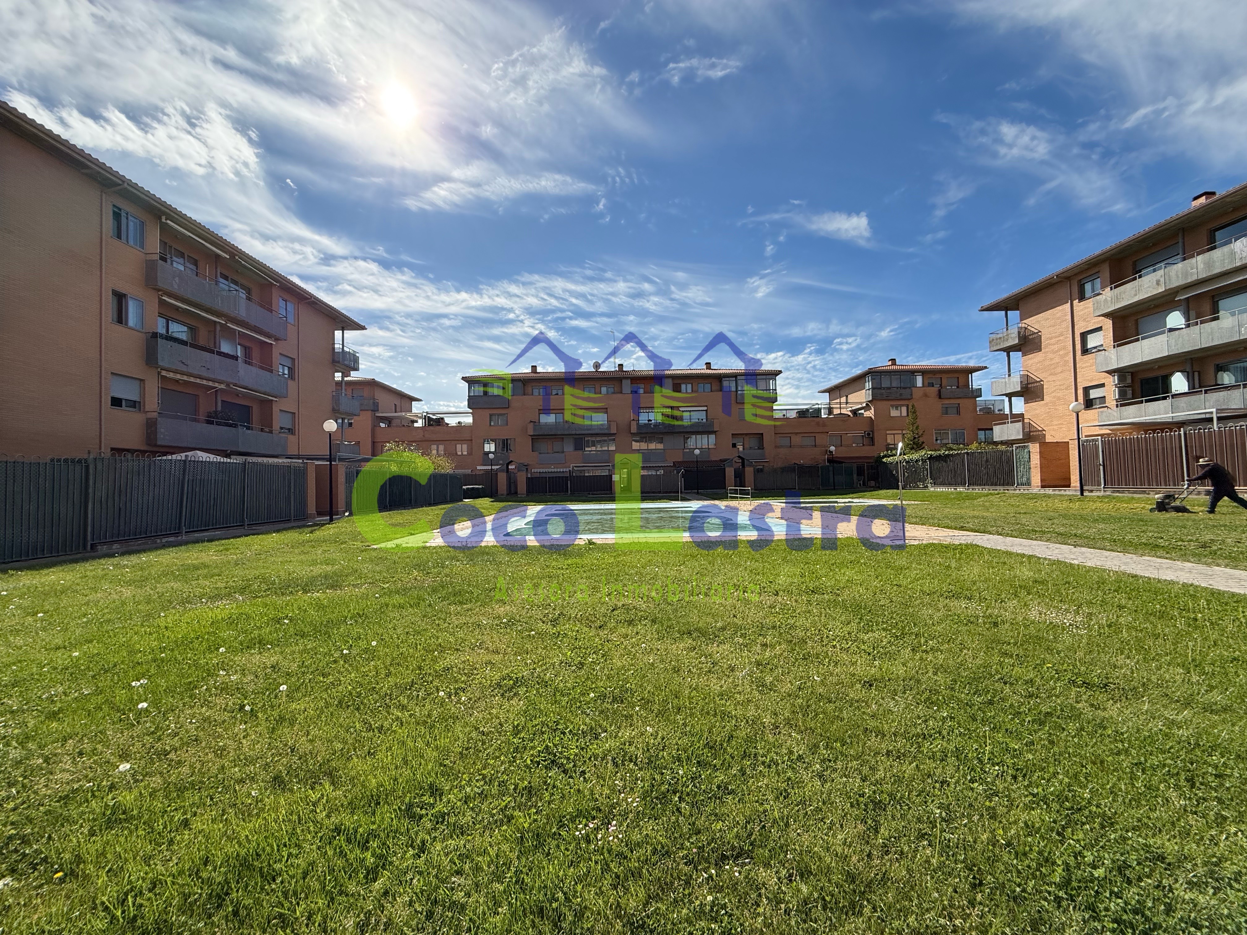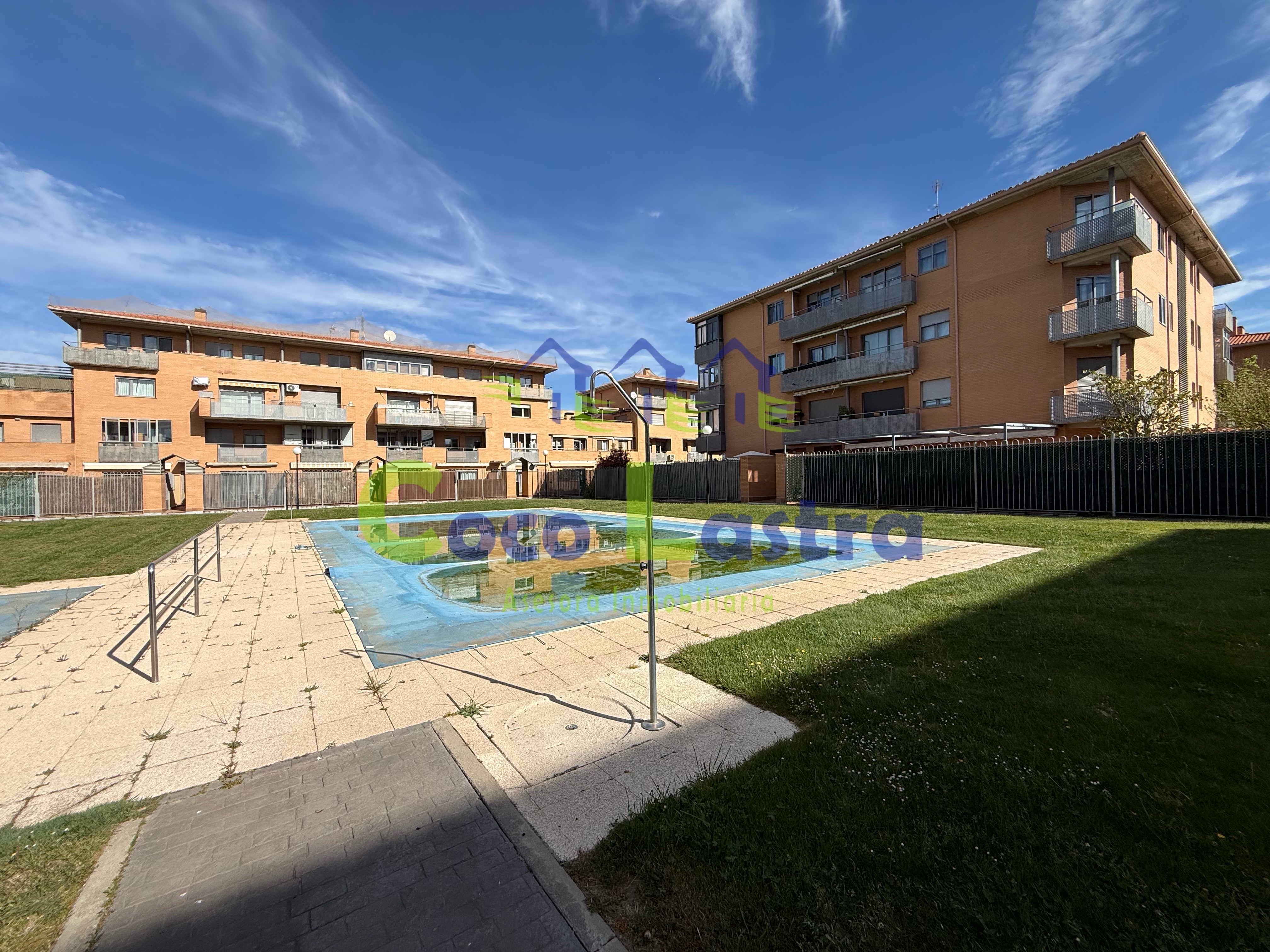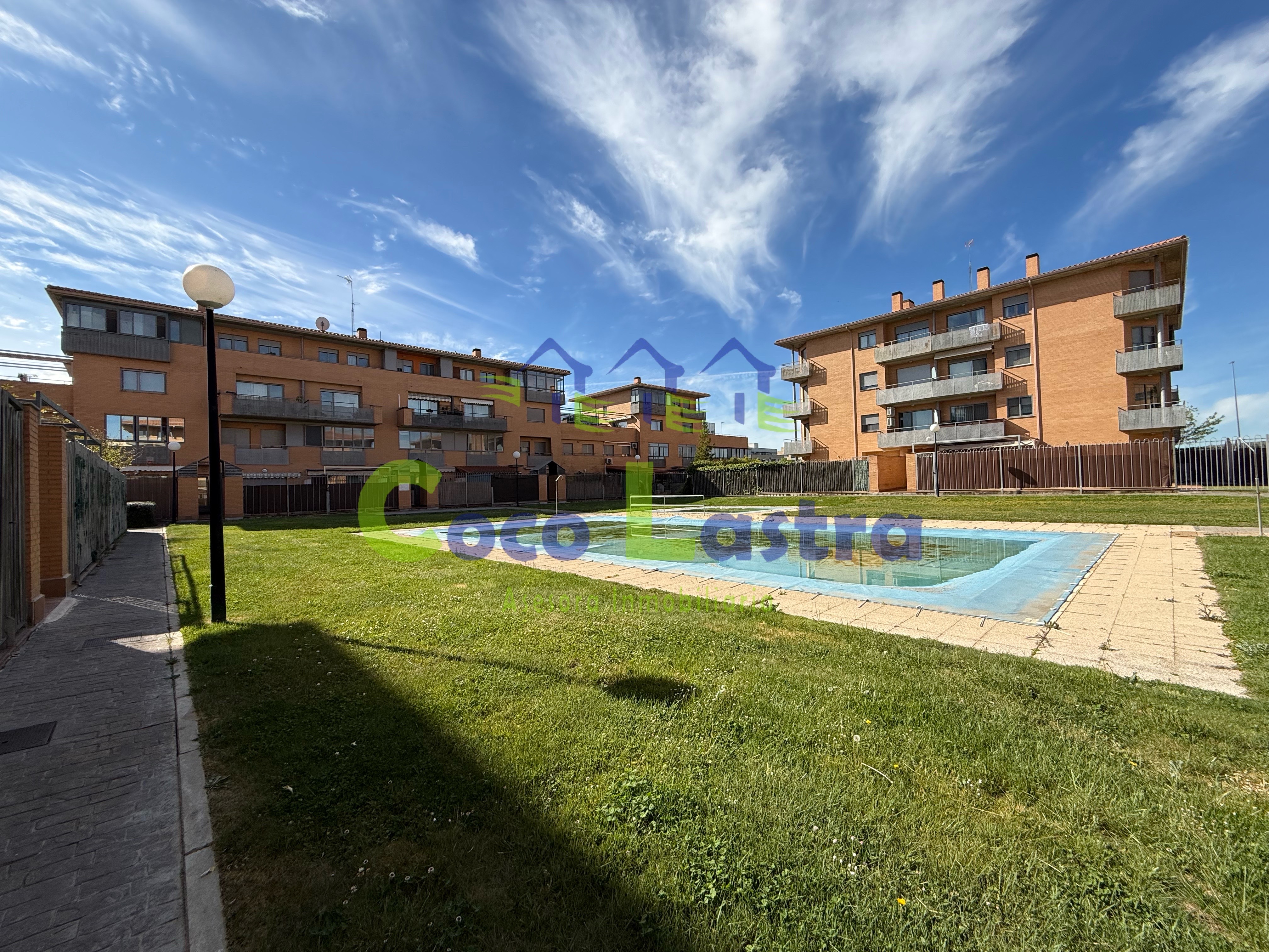 Está localizada en la segunda planta de un edificio sin ascensor, que cuenta con zonas comunes en el interior de la manzana cerrada por los edificios que la conforman, jardines y piscina privada para uso de la comunidad de propietarios de toda ella. Los servicios de calefacción y agua caliente sanitaria son individuales a través de gas natural.