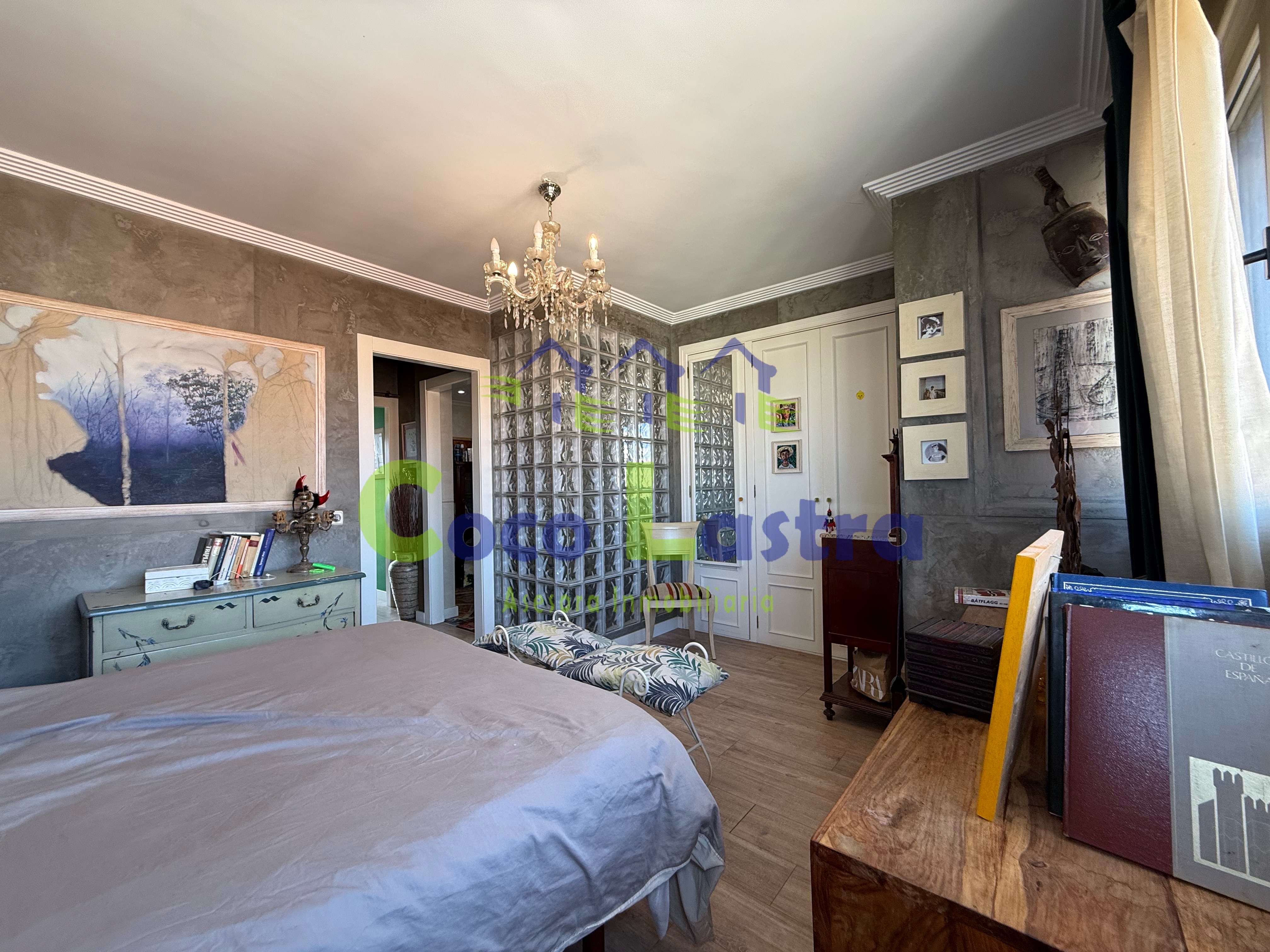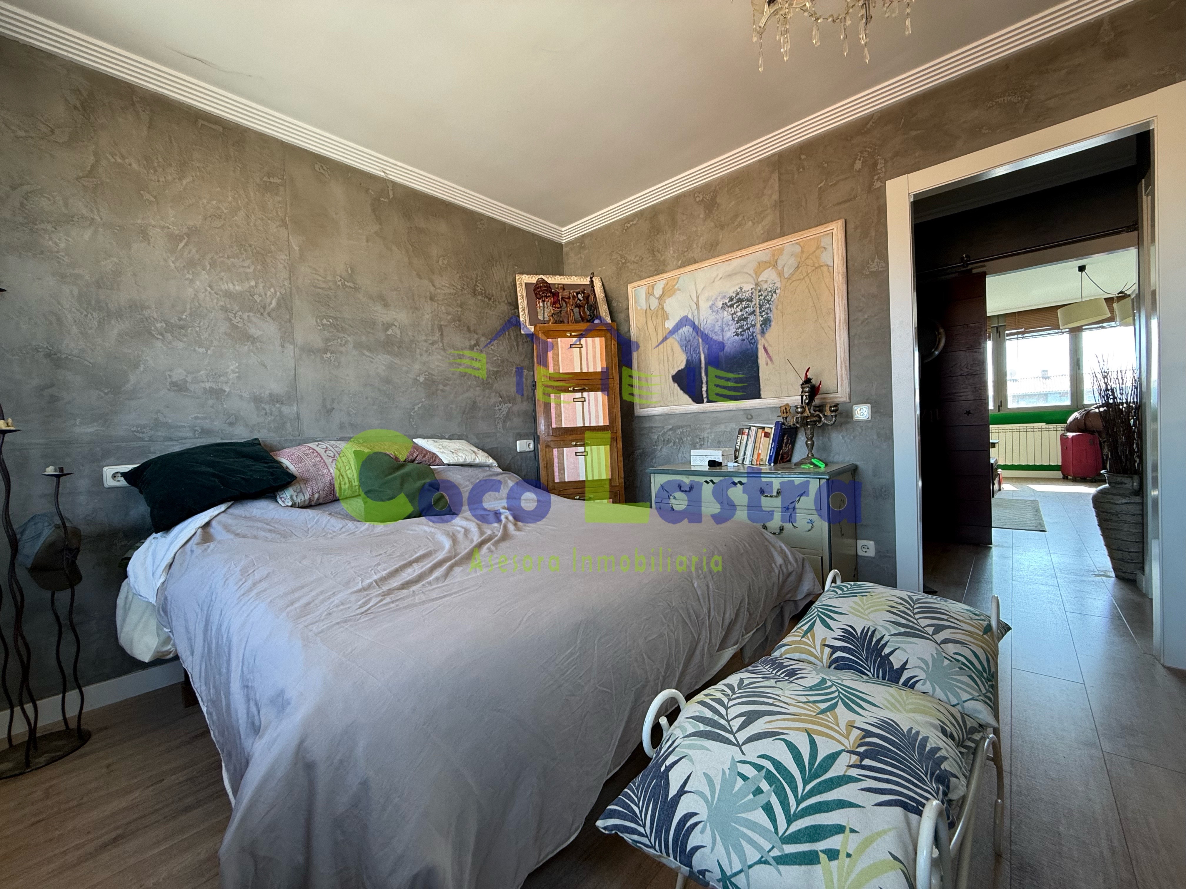 Entre sus acabados, destacan las ventanas de aluminio lacado, con doble cristal y apertura oscilo batiente alguna de ellas, persiana eléctrica en el salón y dormitorio principal, tarima laminada, solado porcelánico y tarima de madera natural, carpinteria interior de madera lacada en blanco, pintura lisa en paredes y techos con moldura de escayola.
