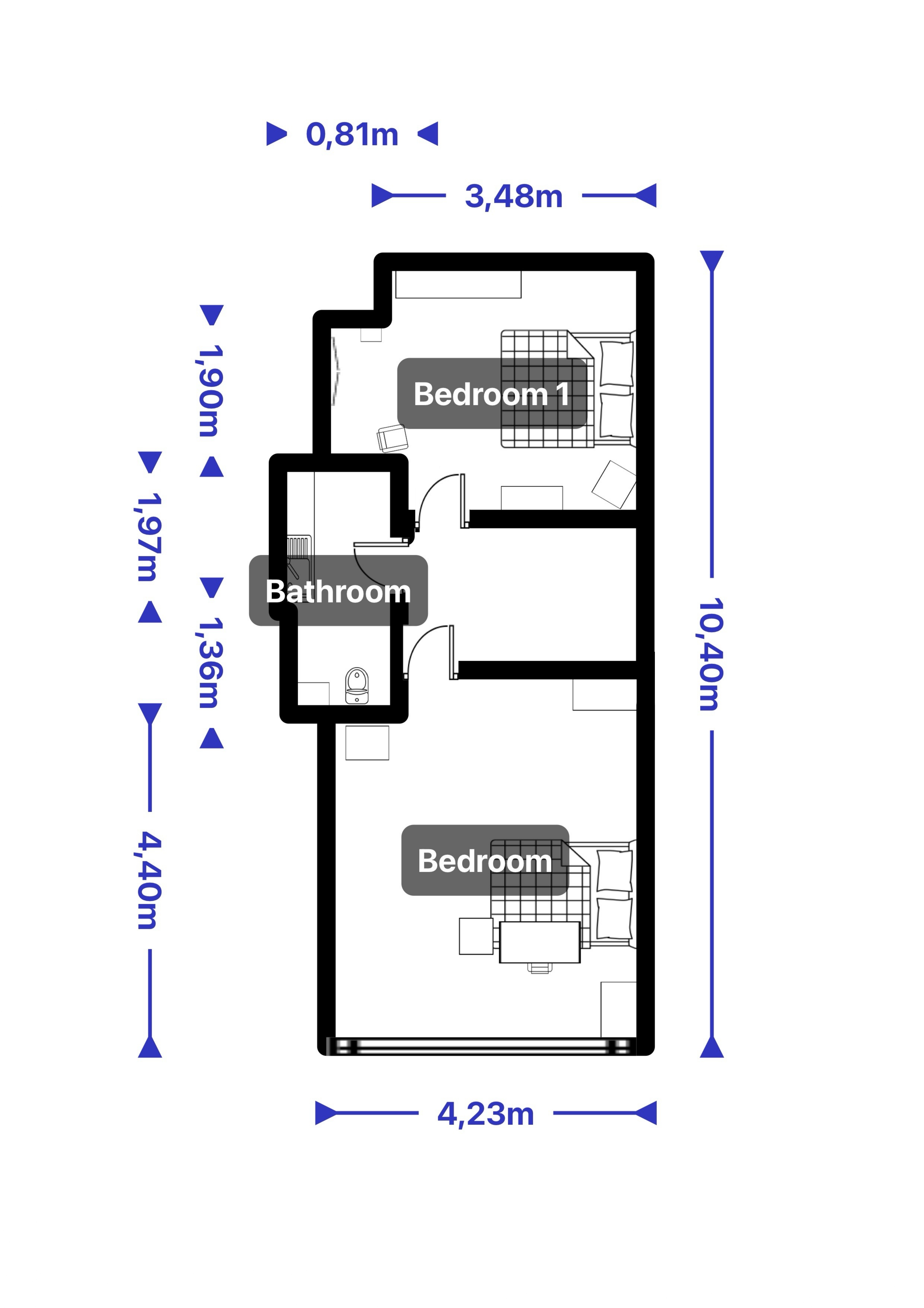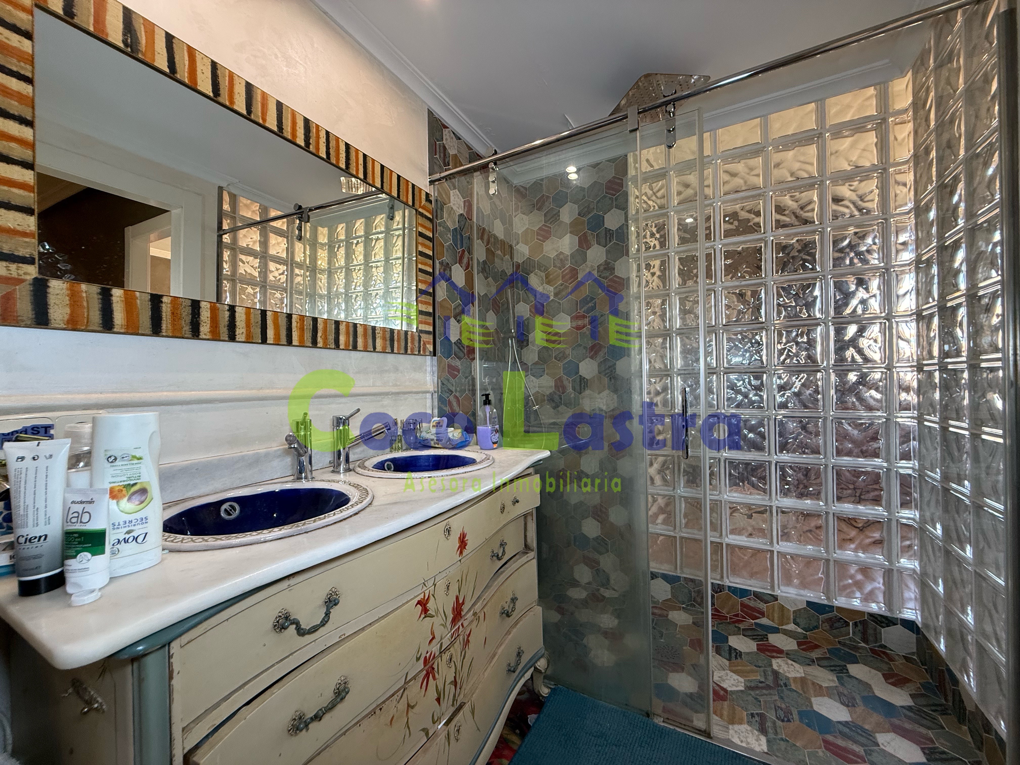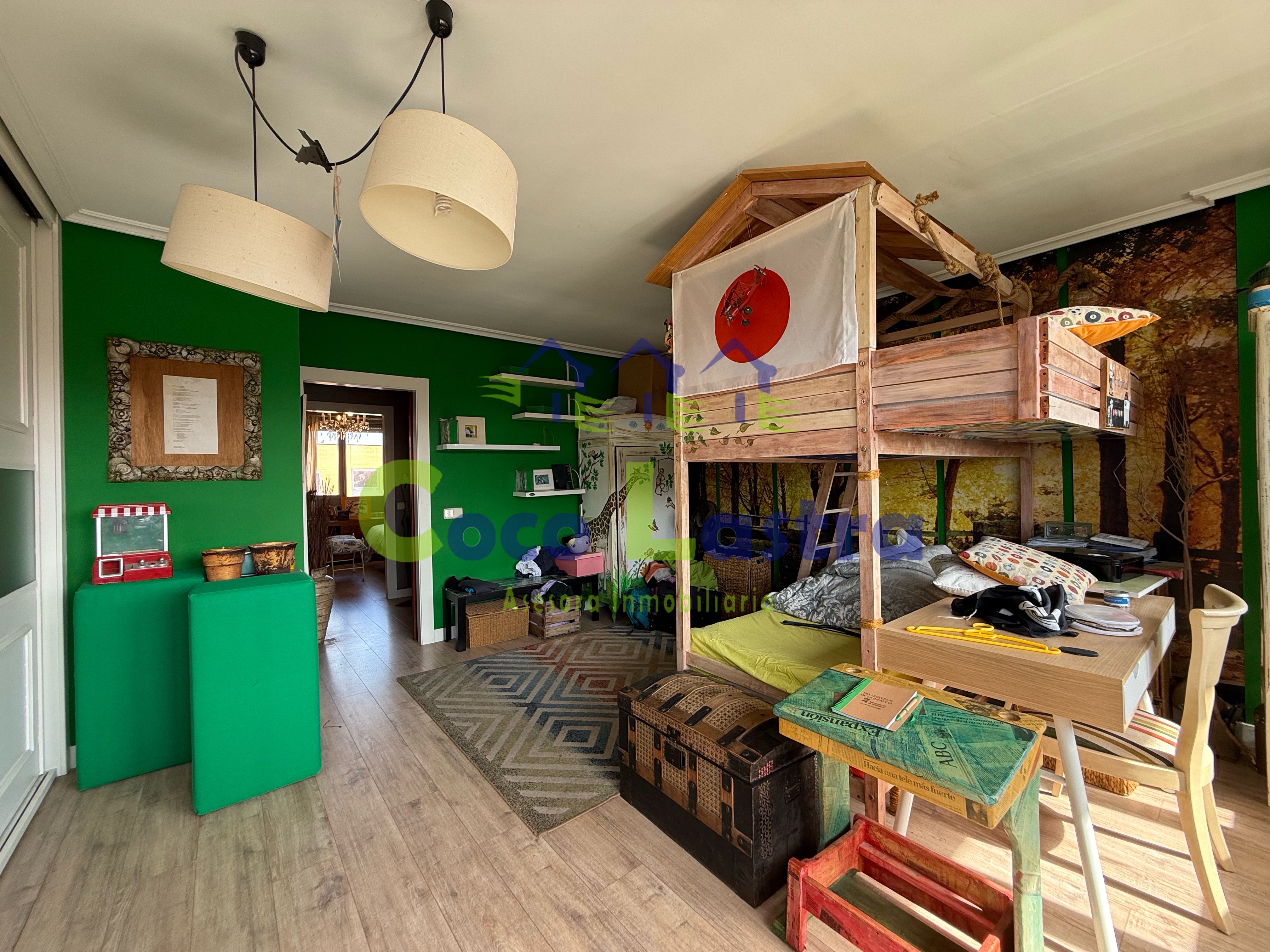 La planta superior cuenta con un pequeño distribuidor, un baño completo con plato de ducha y dos amplios dormitorios, ambos con armarios empotrados revestidos.