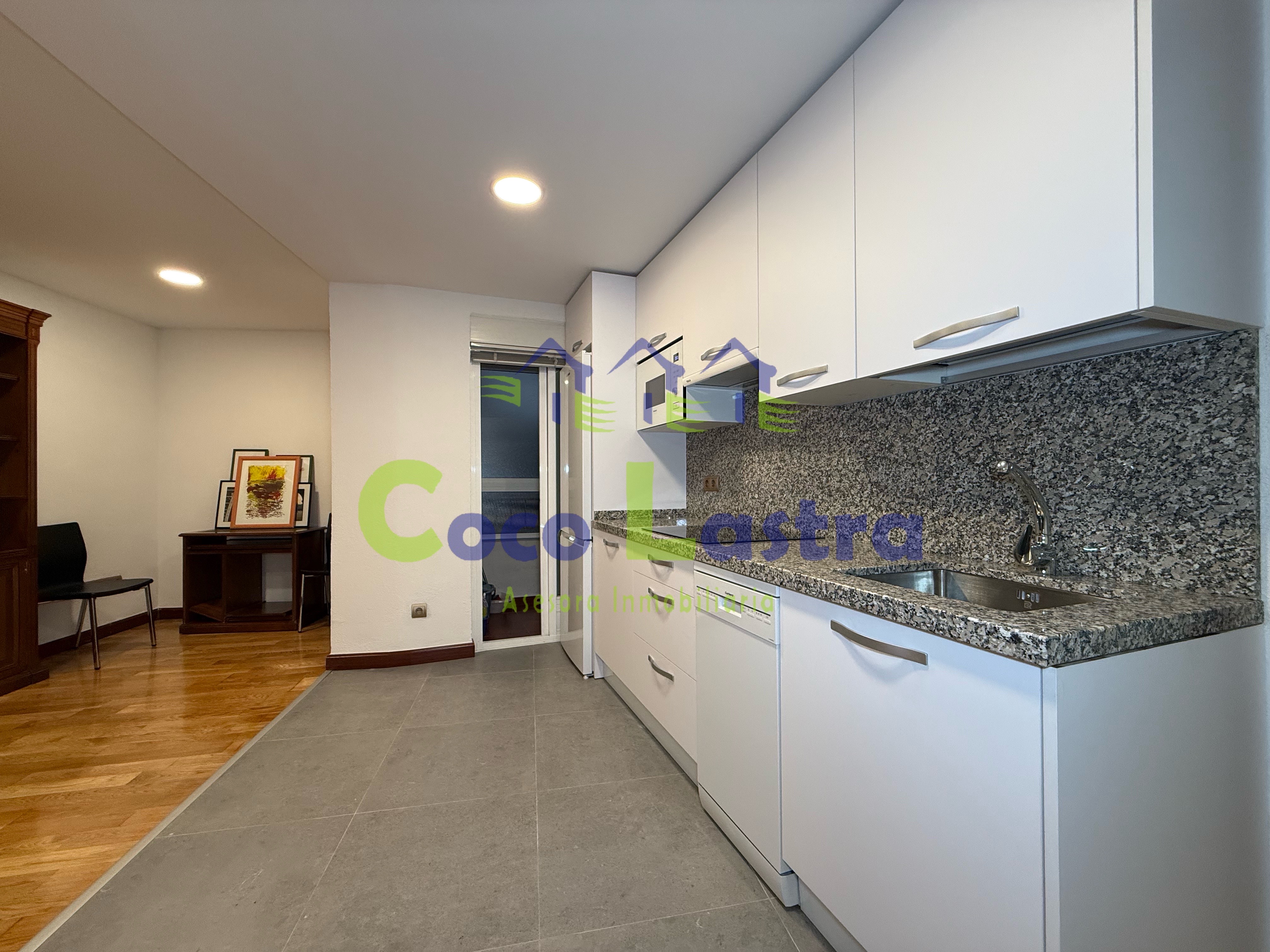 Nada más acceder a la vivienda se encuentra la zona de día, compuesta por un salón-comedor, con cocina americana totalmente equipada, y salida a una práctica galería. Desde el salón se accede a una primera habitación, ideal como despacho o dormitorio auxiliar.