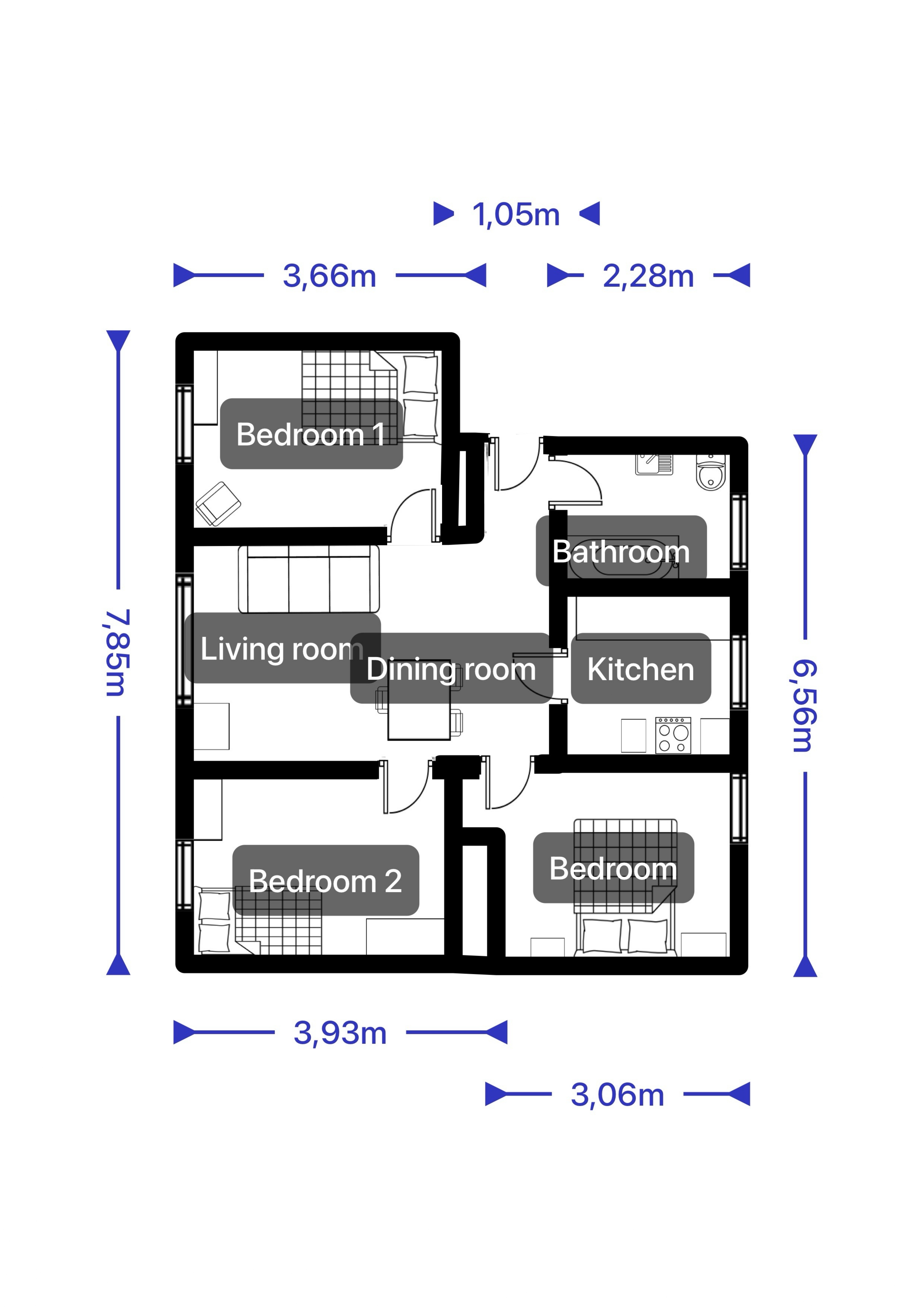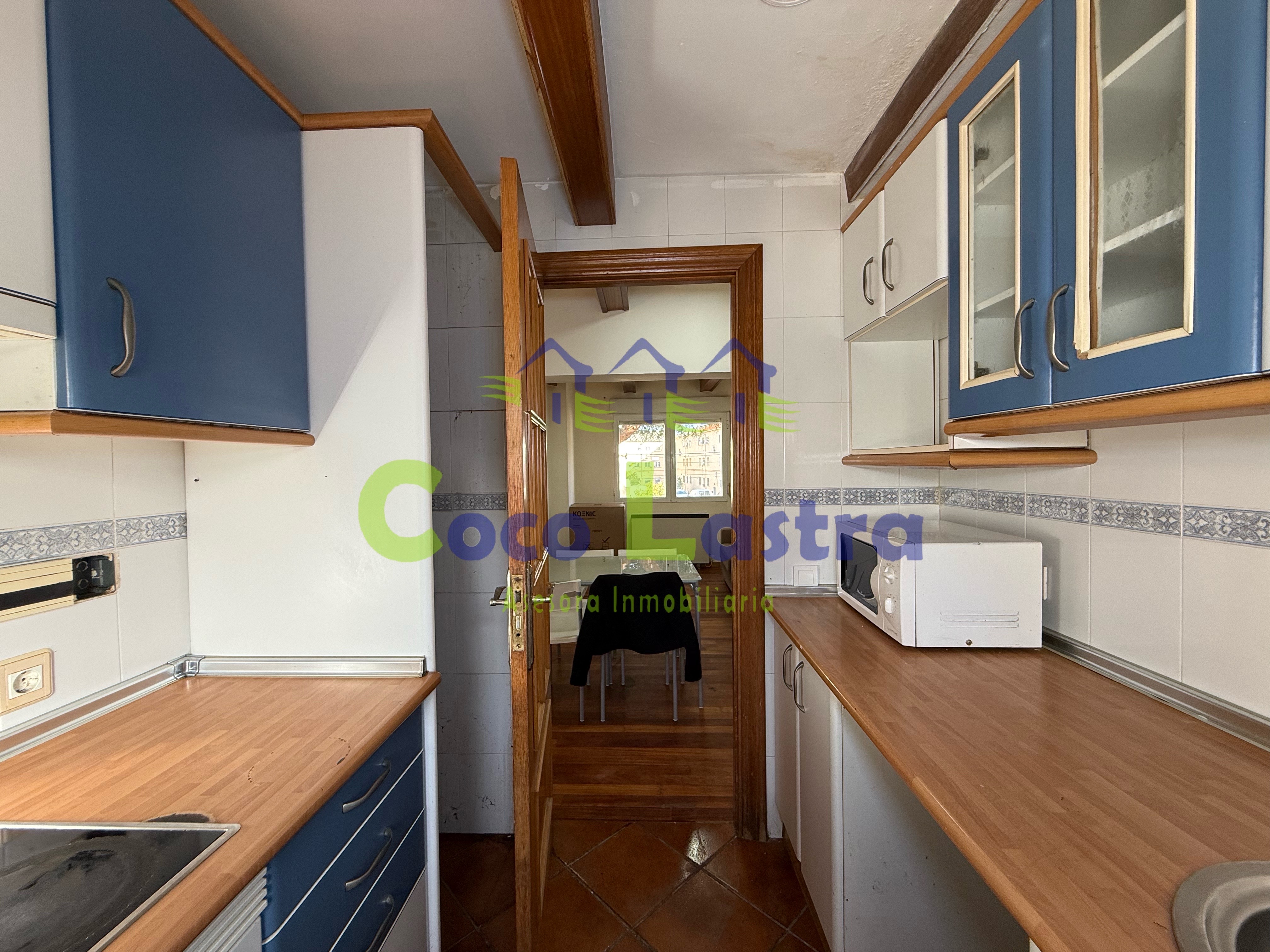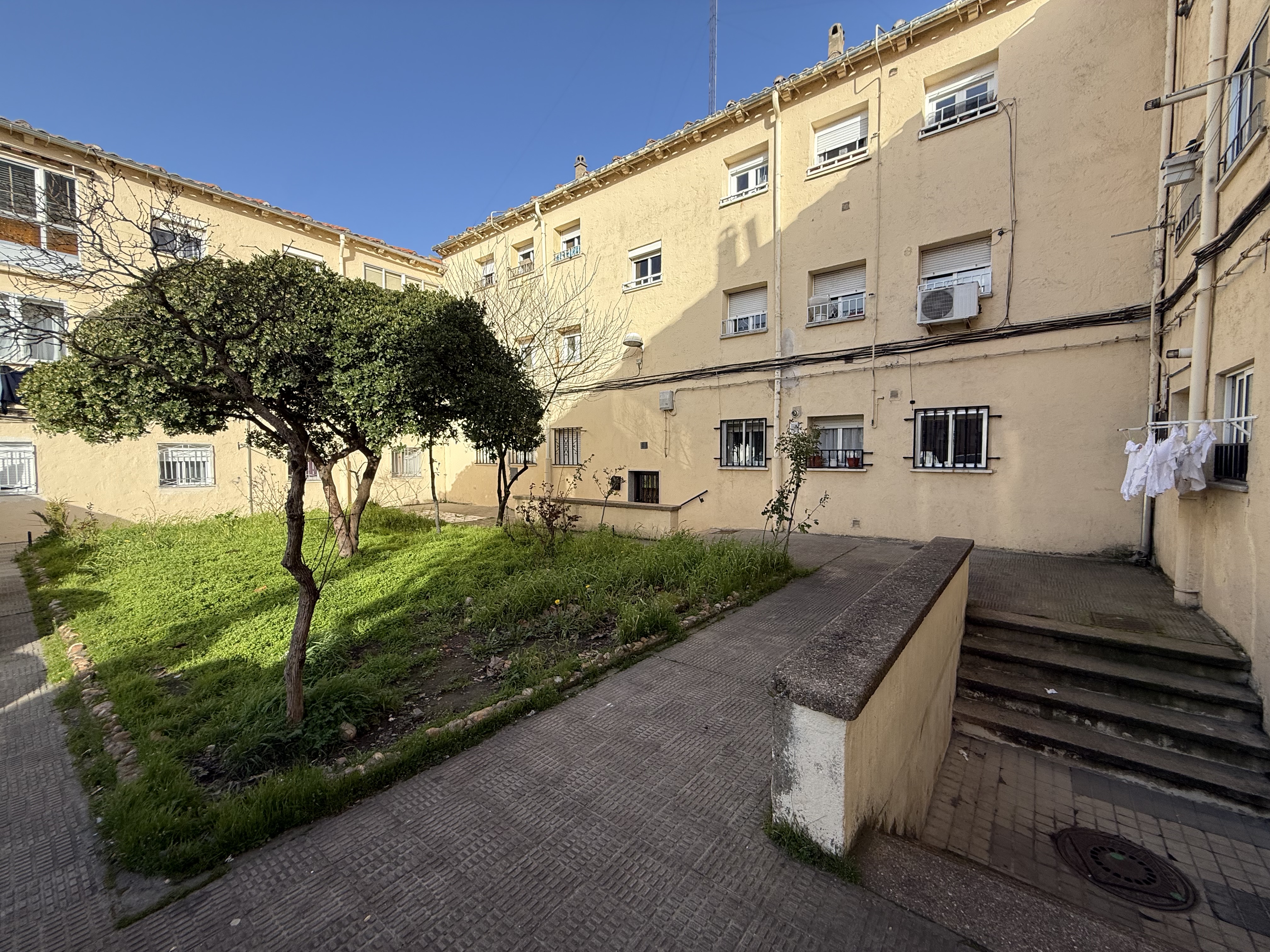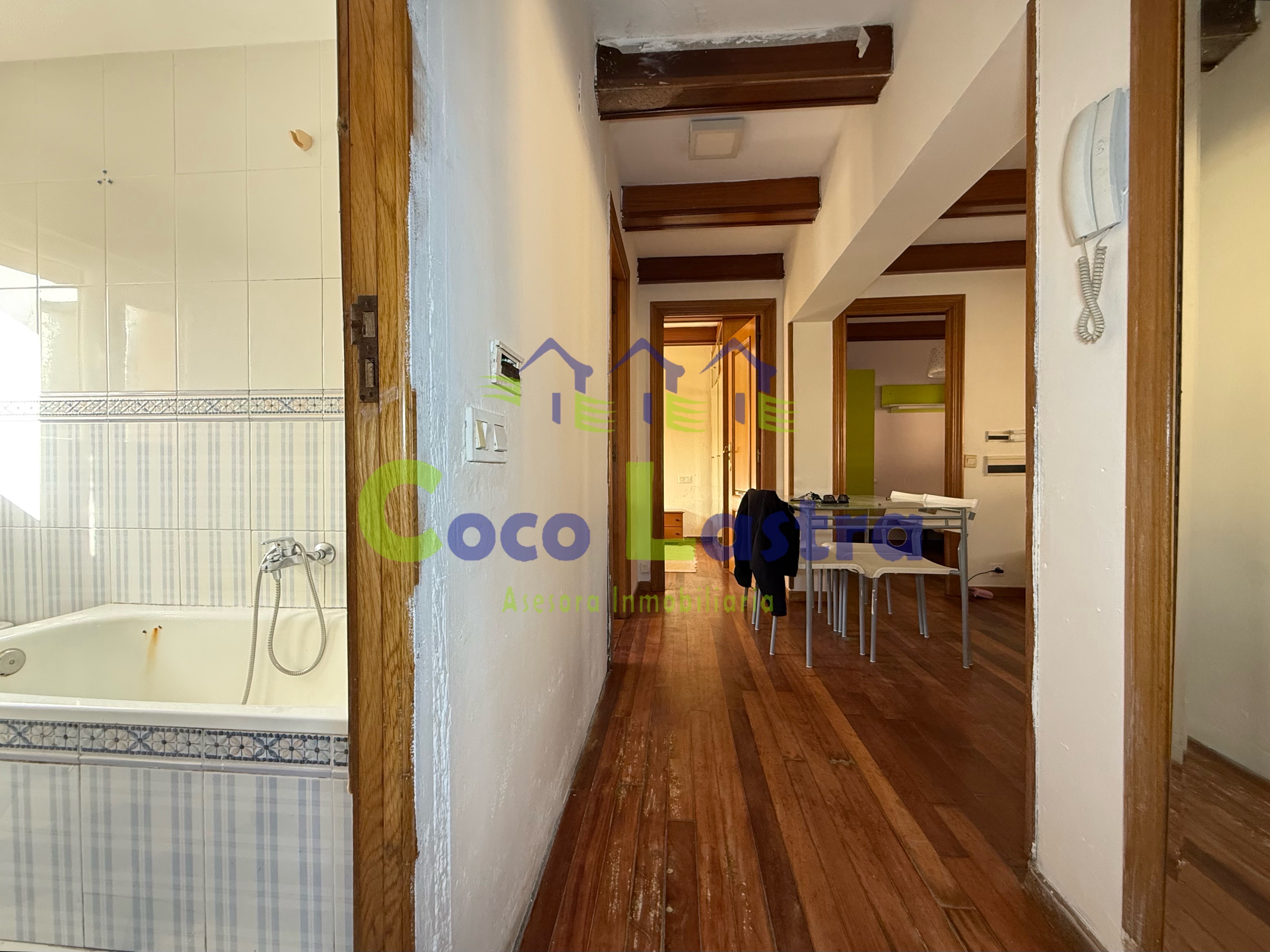 La vivienda se sitúa en la primera planta de un edificio construido en 1953 que no dispone de ascensor y cuenta con unos 52 m2 útiles. Entramos directamente a un hall distribuidor, que nos da acceso a todas las dependencias de la casa, salón-comedor, cocina independiente, tres dormitorios, el principal con armario empotrado y un baño completo con bañera.