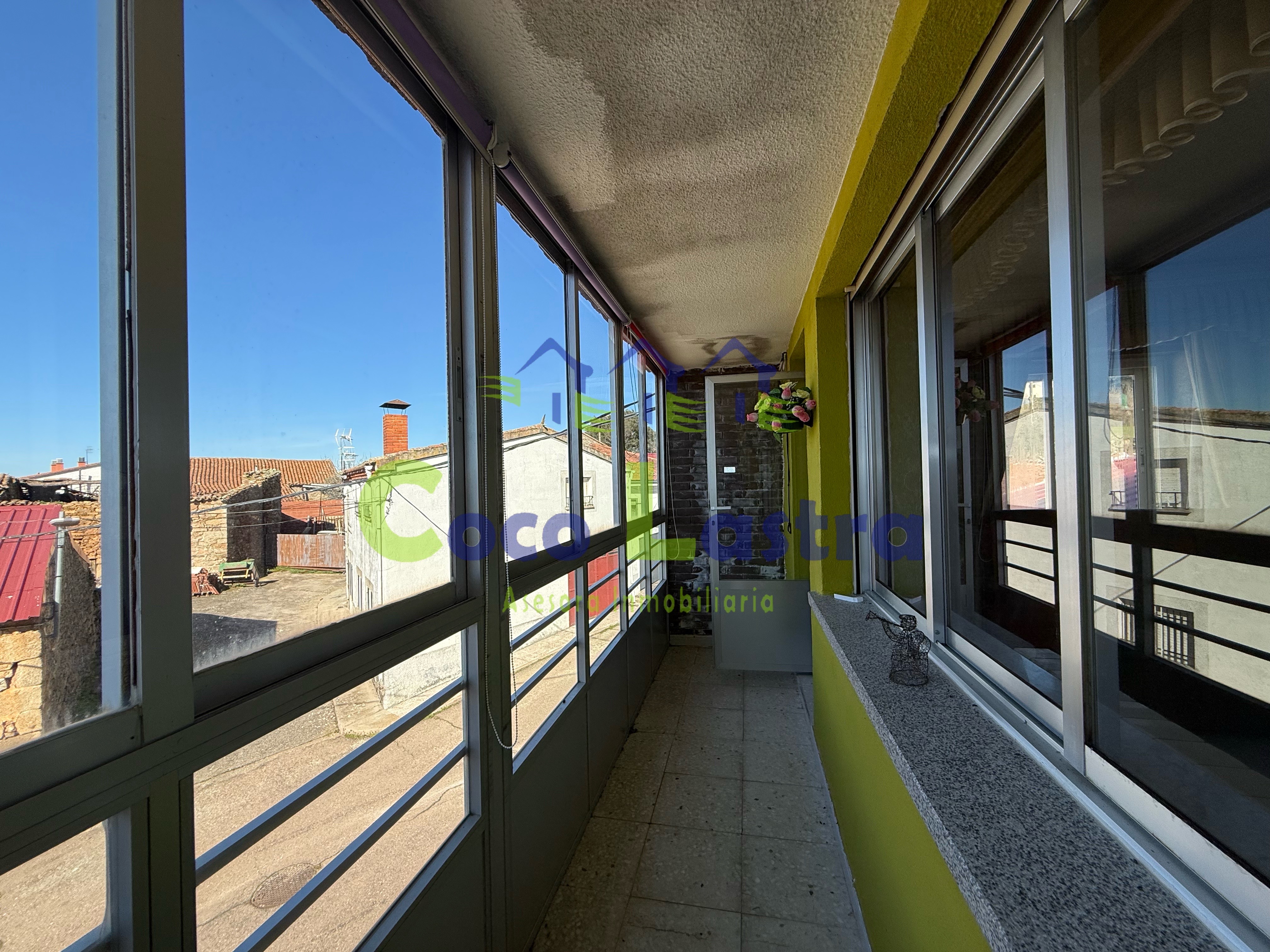La vivienda, construida en 1986 y en buen estado de conservación, dispone de 176 m2 construidos distribuidos en dos plantas comunicadas interiormente a través de una escalera de granito. La planta primera, se destina a la vivienda, con una superficie aproximada de 85 m2, que se distribuyen en hall de entrada, amplio y luminoso salón-comedor orientado al suroeste con acceso a una terraza cerrada desde la que se pueden disfrutar de unas bonitas vistas de la Sierra de Béjar, tres dormitorios todos ellos dobles, cocina independiente totalmente equipada, baño completo con bañera y una práctica despensa que nos aporta un espacio extra de almacenaje.