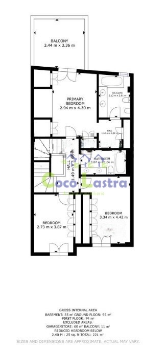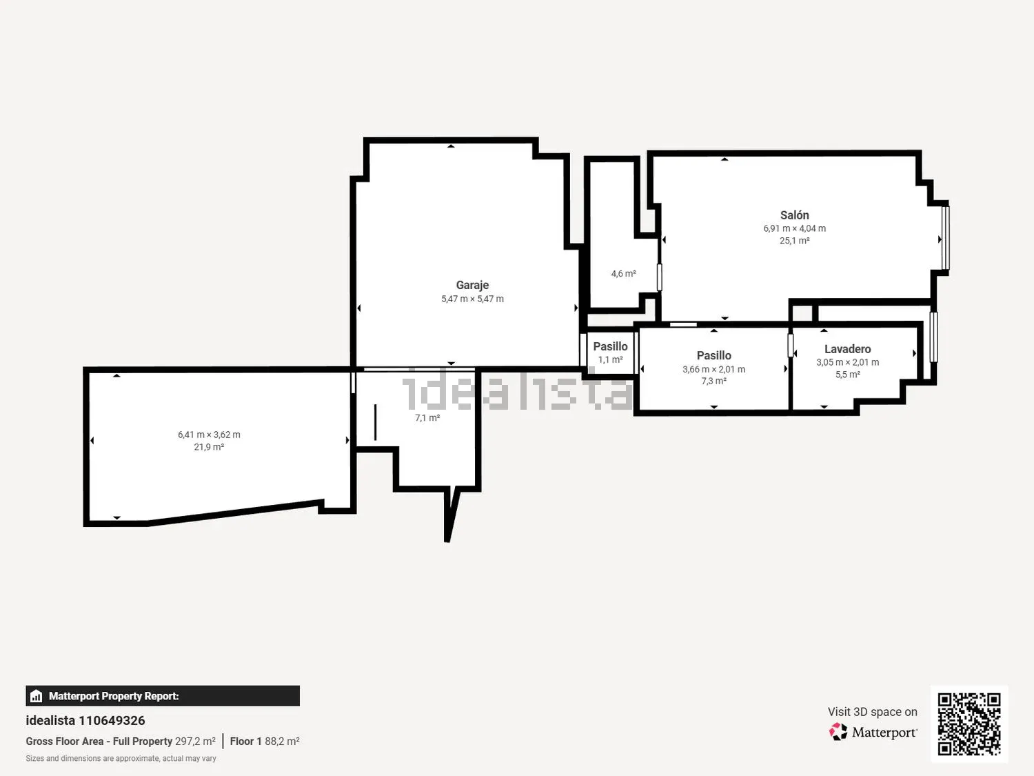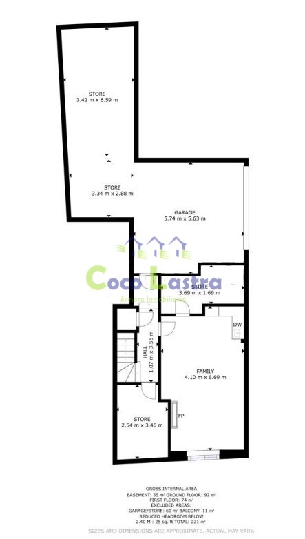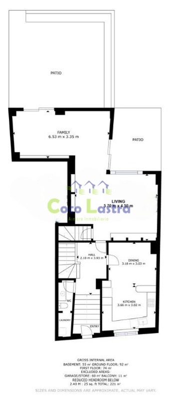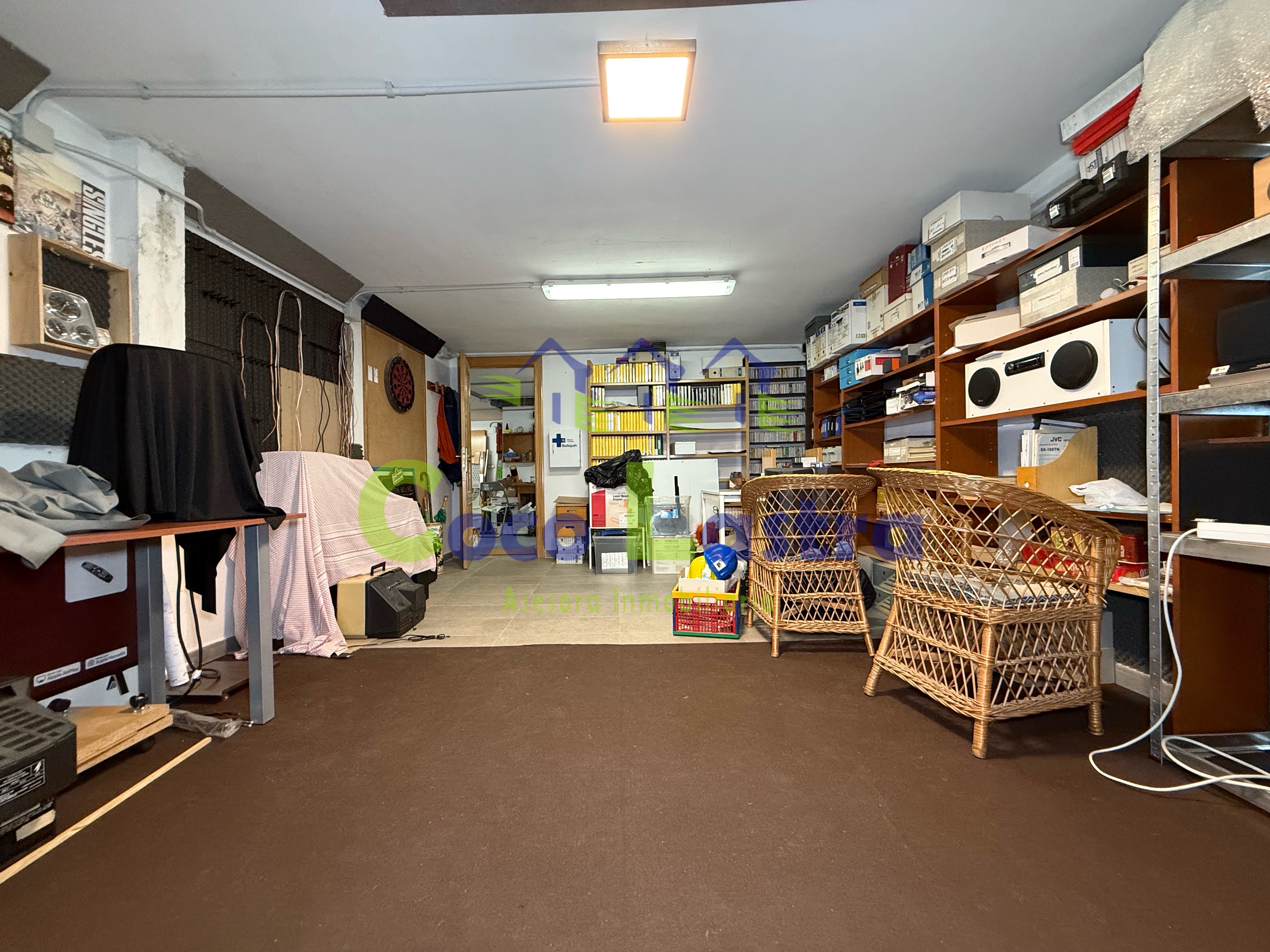 Accedemos desde la calle a la planta más baja, a través de una rampa que comparte con el edificio colindante y dos puertas automáticas, la segunda de ellas privativa. Esta planta cuenta con una superficie de 119 m2 útiles aproximadamente, y está distribuida, en una habitación multiusos, zona de estacionamiento para 2 o 3 vehículos, un pequeño distribuidor, una bodega con despensa y chimenea, cuarto trastero y escalera de acceso a la planta baja.